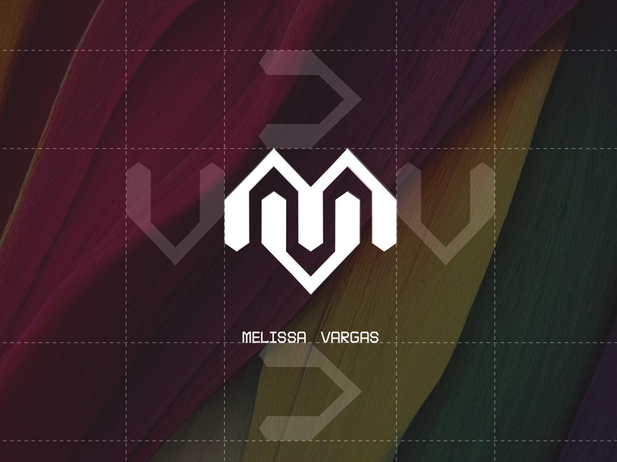 The logo consists of stylized and interconnected M and V letters, which encapsulates the association to sports, music, impetuousness, and movement through its dynamic design. The stylized letters M and V intertwine with each other, creating a sense of boldness and unity. The fluid curves and energetic lines convey a sense of impulsive movement, reflecting the dynamism of Melissa Vargas as a brand.